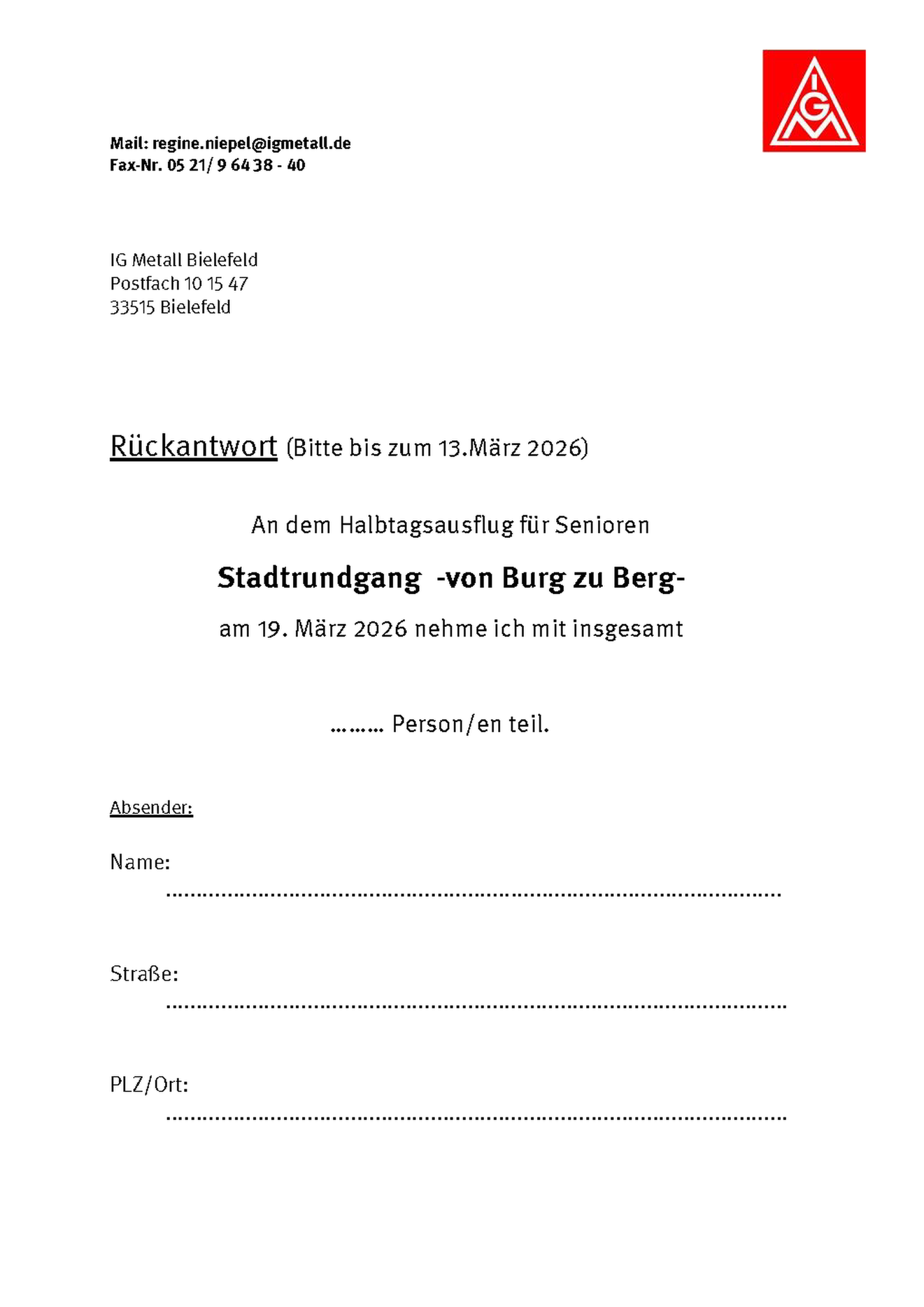 Bitte Anmeldung spätestens bis zum 13.03.2026 an die IG Metall Geschäftsstelle Bielefeld zurücksenden.